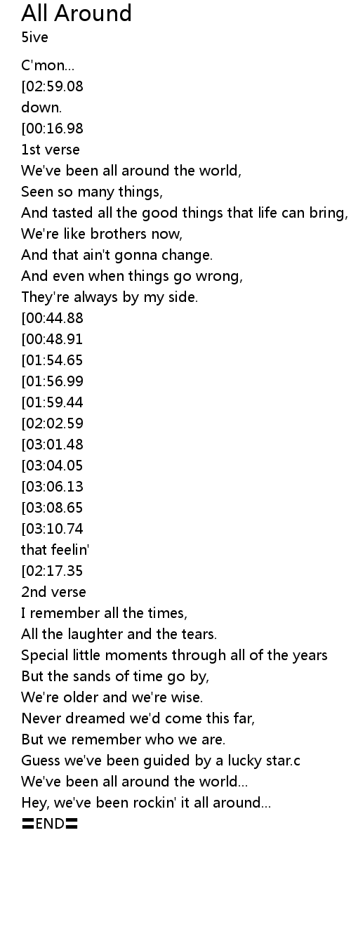 | [02:41.32] | We've been all around the world... |