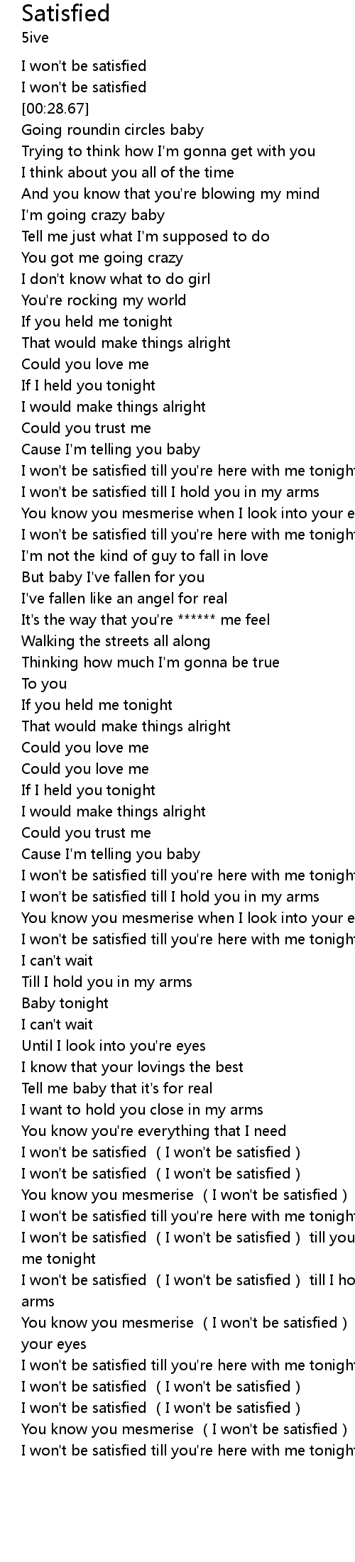 | [03:50.19] | I won' t be satisfied I won' t be satisfied |