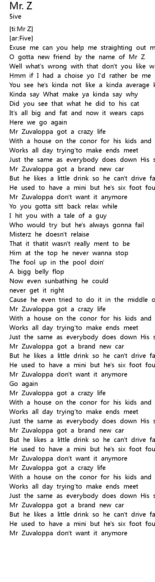 Mr. Z Lyrics