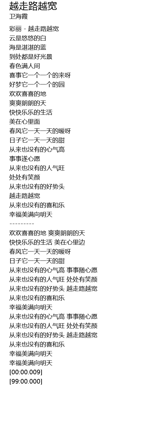 | [01:34.71] | yuè zǒu lù yuè kuān |