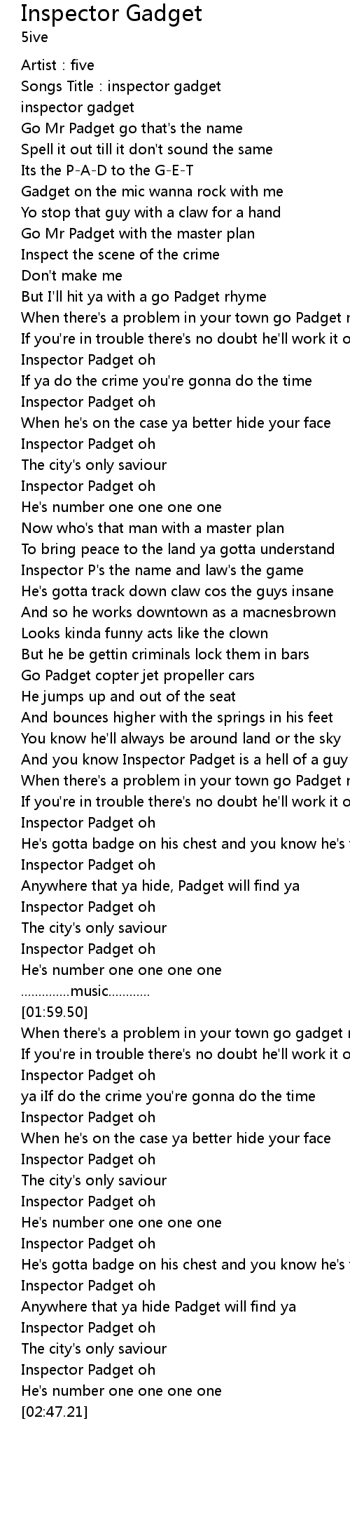 | [01:21.71] | And you know Inspector Padget is a hell of a guy c'mon |