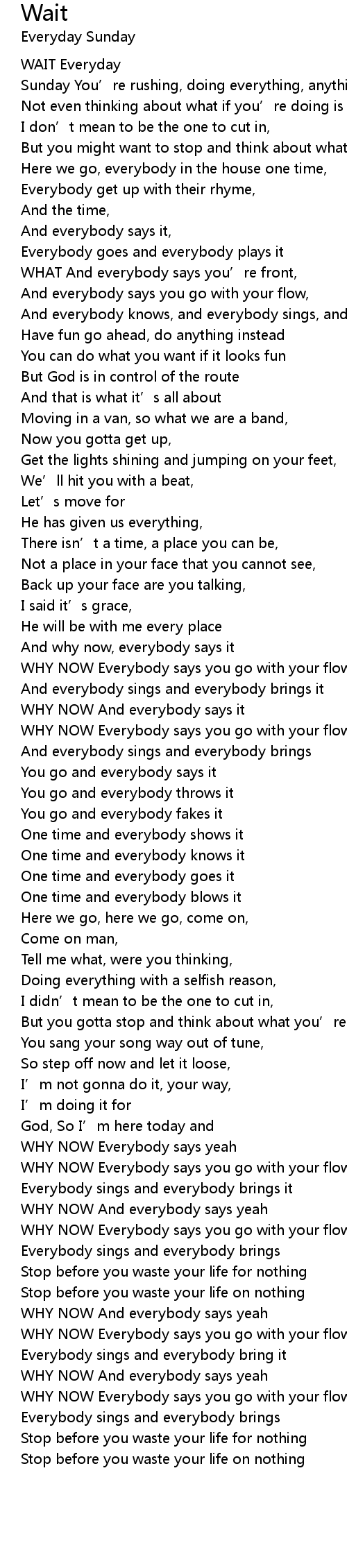 | WHY NOW Everybody says you go with your flow and everybody knows | |