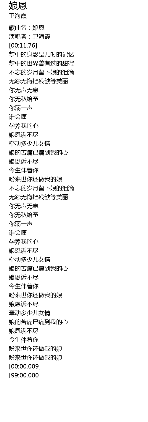 | [01:35.77] | 娘恩诉不尽 |