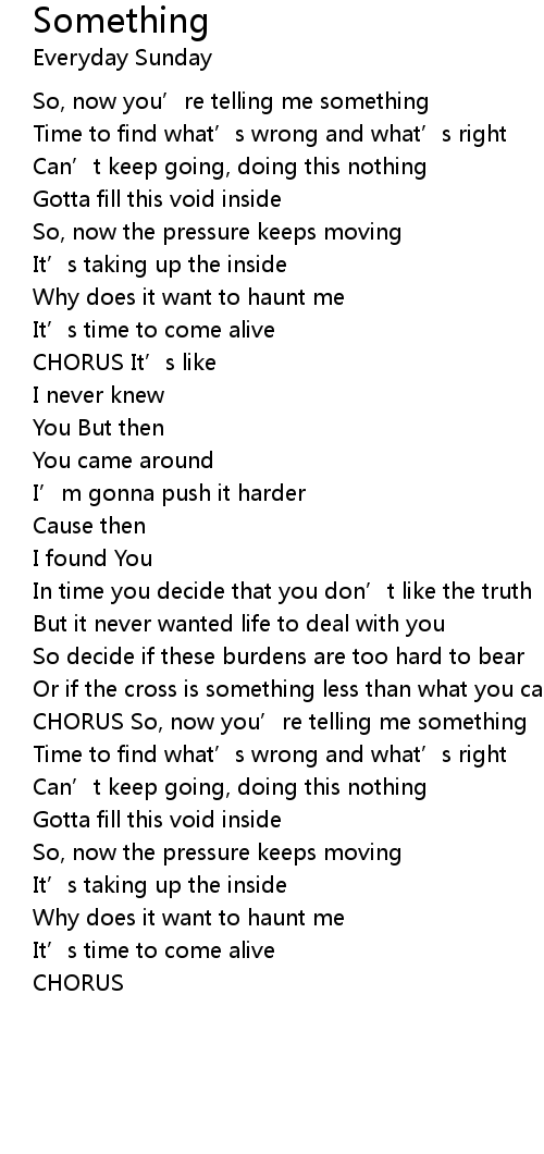 | CHORUS So, now you' re telling me something | |