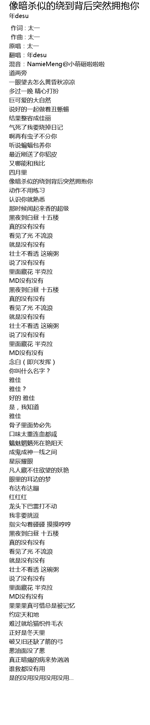| [00:00.985] | 原唱:太一 |