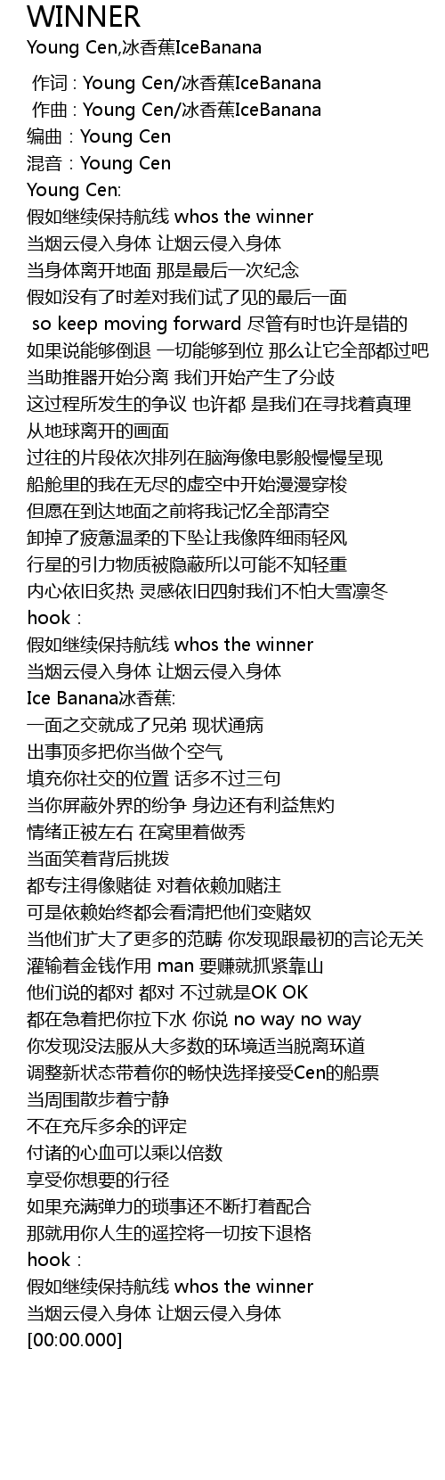 | [00:07.249] | 假如继续保持航线 whos the winner |