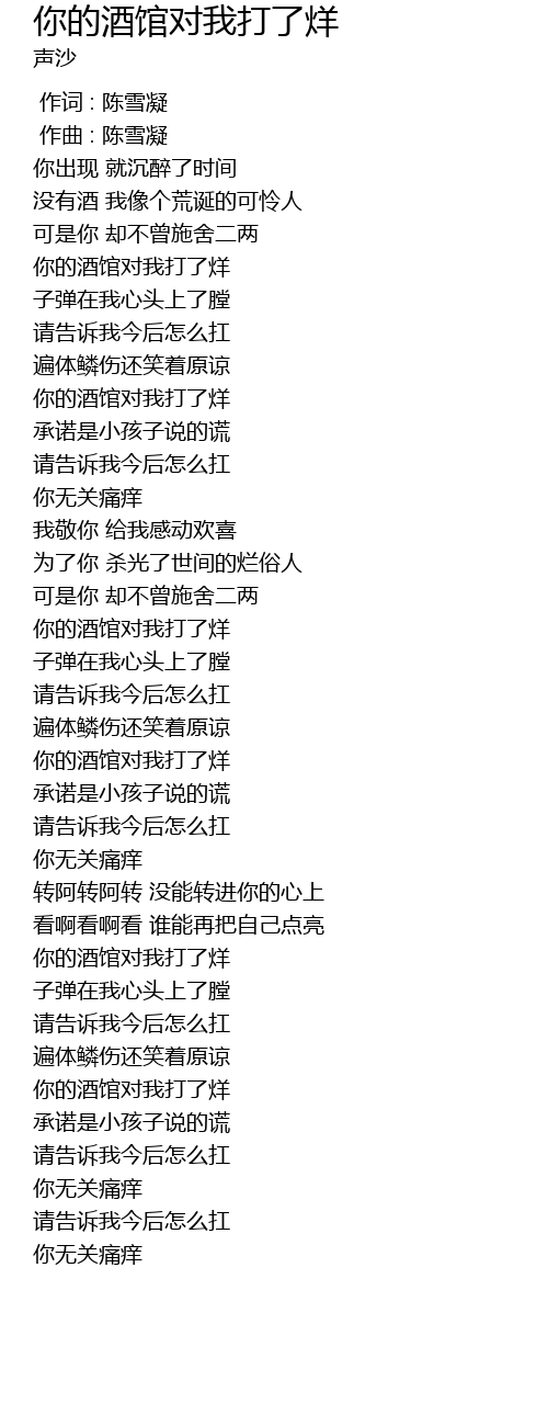 | [03:05.31] | 你的酒馆对我打了烊 |