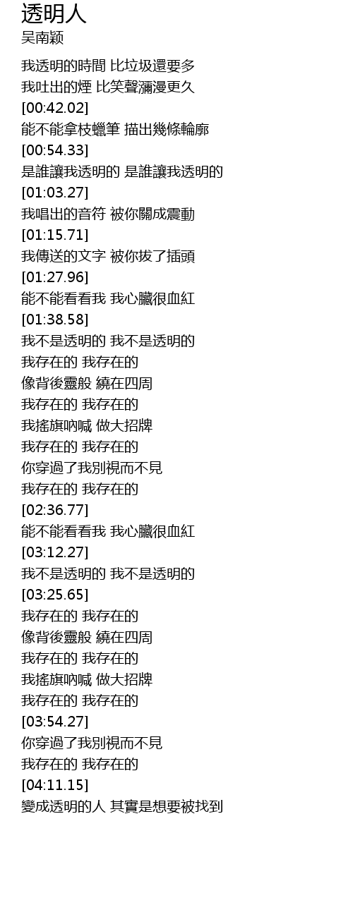 | [01:41.52] | 我不是透明的 我不是透明的 |