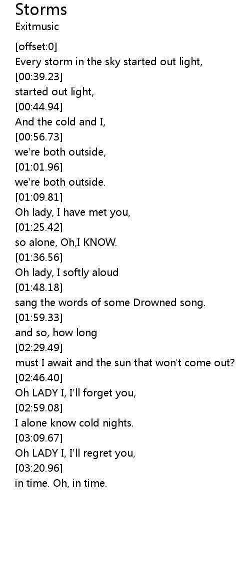 | [00:26.56] | Every storm in the sky started out light, |