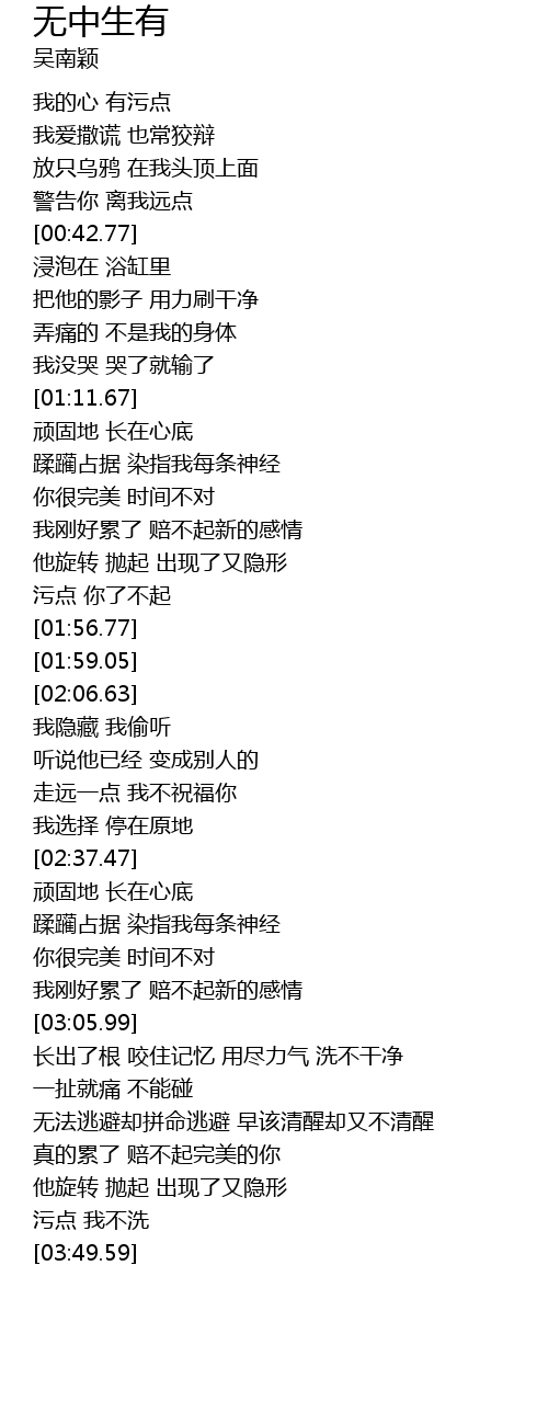 | [03:41.44] | wū diǎn wǒ bù xǐ |