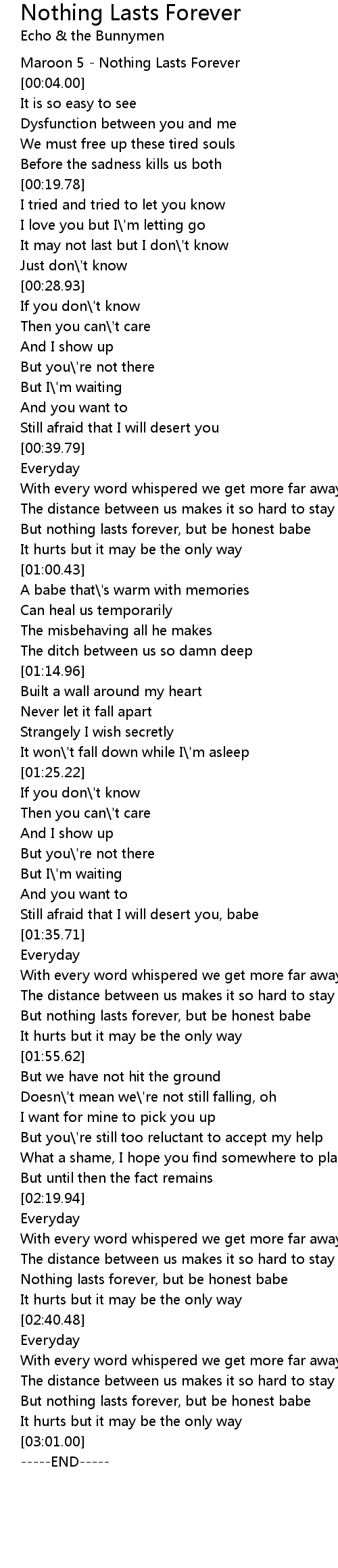 Maroon 5 - Nothing Lasts Forever |