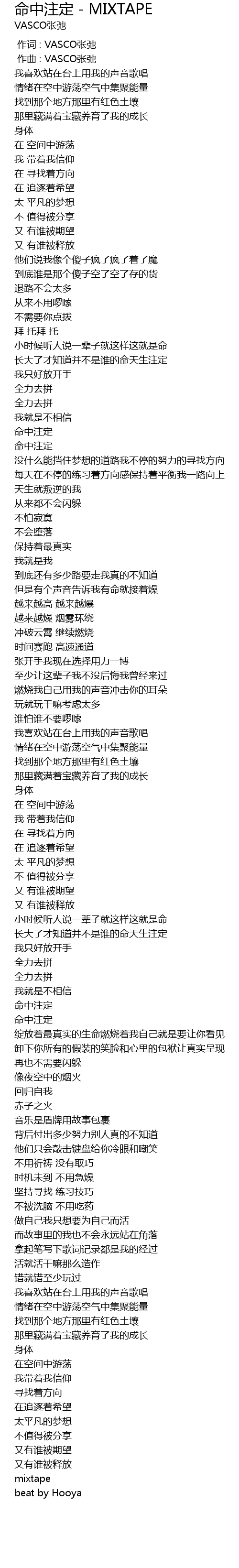 | Song | 命中注定 - MIXTAPE |
