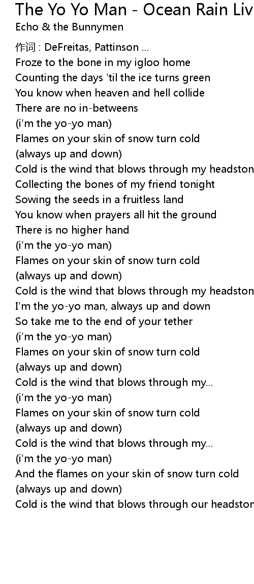 | Song | The Yo Yo Man - Ocean Rain Live 2008 |