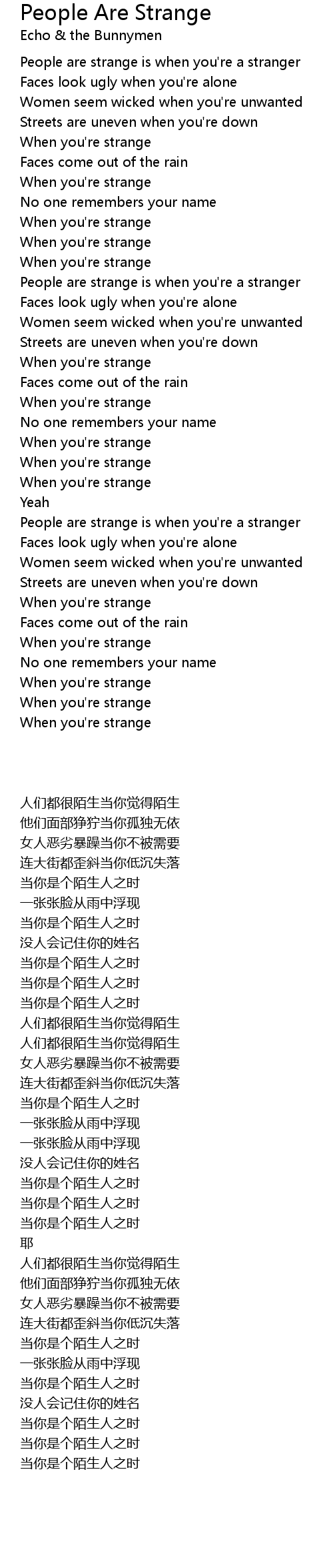 People are strange is when you're a stranger |