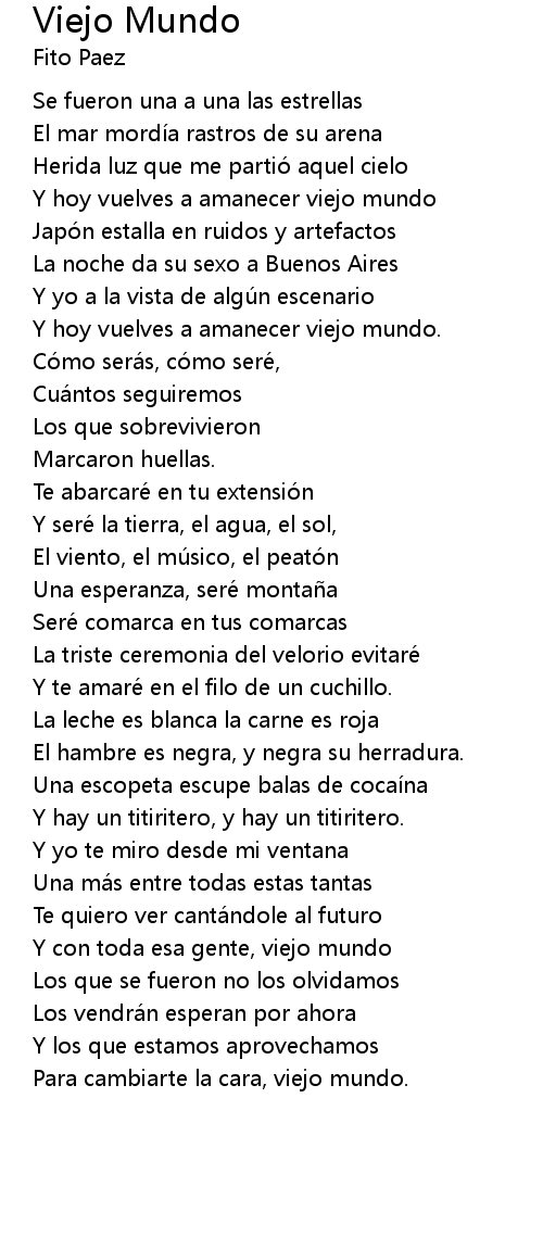 | Y hoy vuelves a amanecer viejo mundo. | |