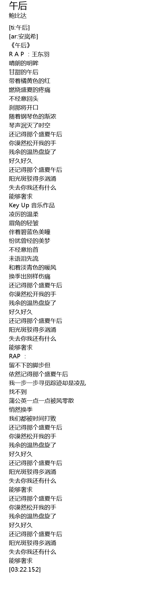 | [02:56.65] | hái jì de nà gè shèng xià wǔ hòu |