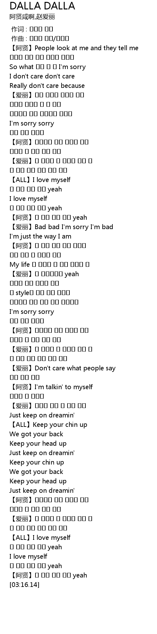 | [03:13.14] | 【阿贤】난 너랑 달라 달라 yeah |
