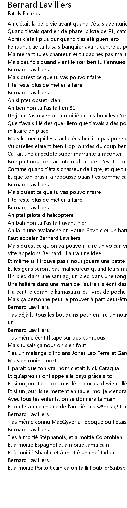 | Faut appeler Bernard Lavilliers | |