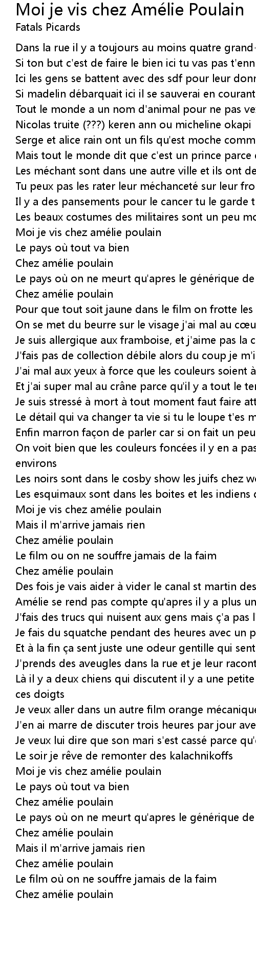 | Et j'ai super mal au crâne parce qu'il y a tout le temps de l'accordéon | |