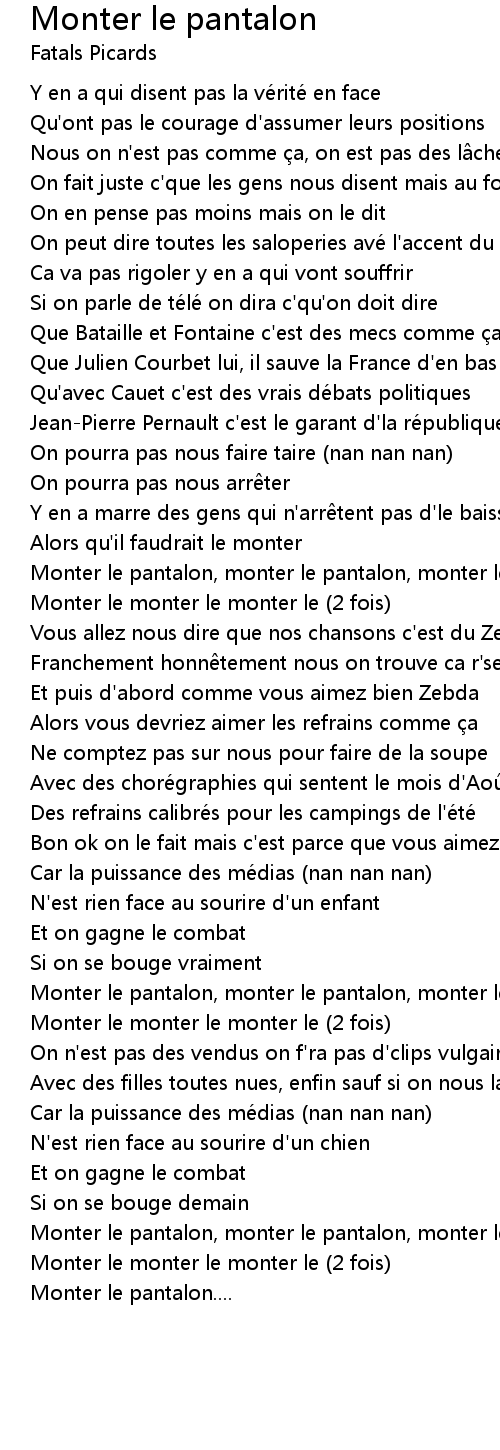 | Monter le pantalon, monter le pantalon, monter le pantalon | |