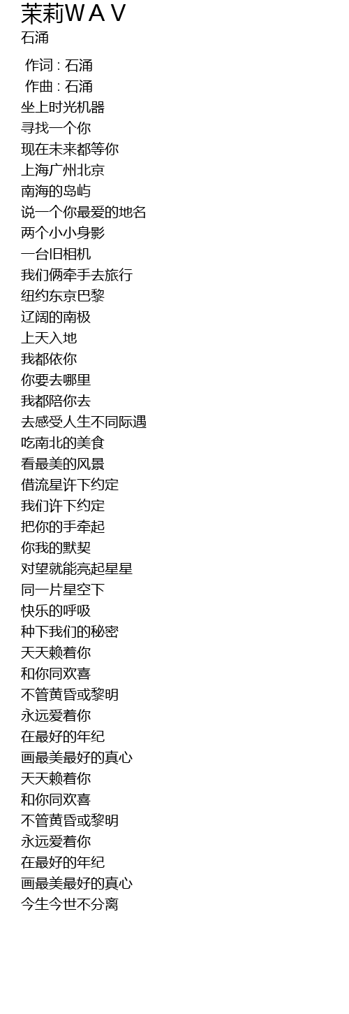 | [00:00.000] | 作词 : 石涌 |