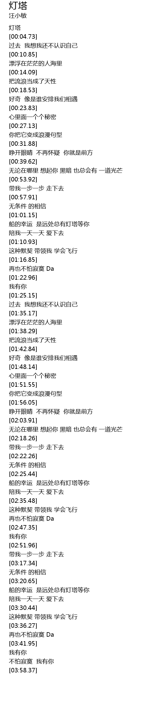 | [01:01.78] | 船的幸运 是远处总有灯塔等你 |