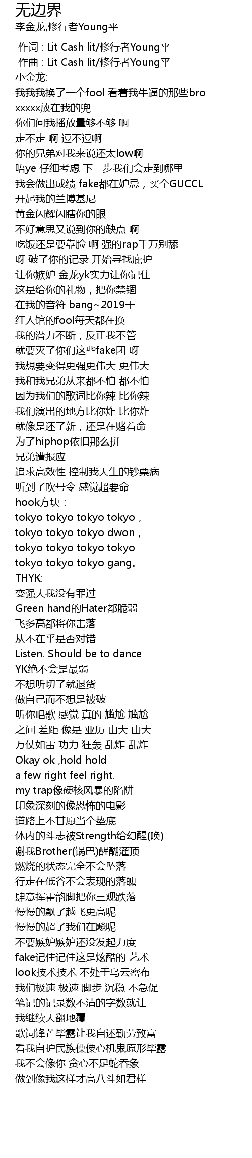 | [00:00.000] | 作词 : Lit Cash lit/修行者Young平 |