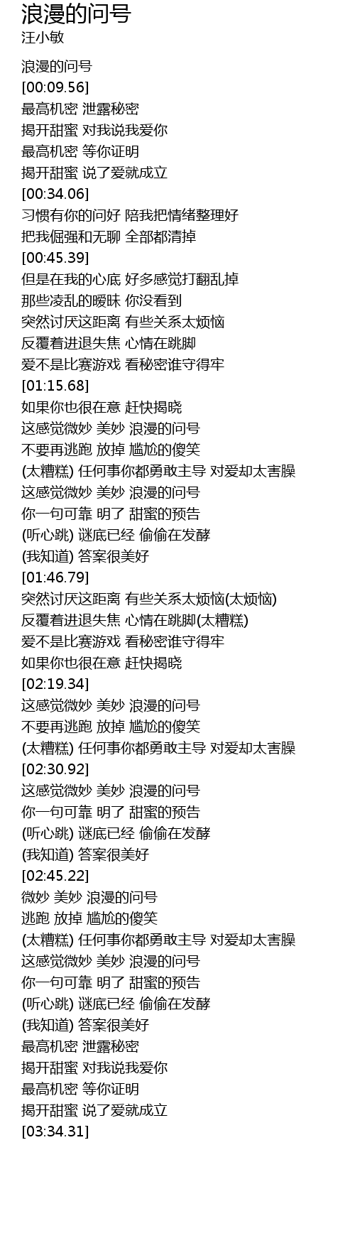 | [03:00.44] | 这感觉微妙 美妙 浪漫的问号 |