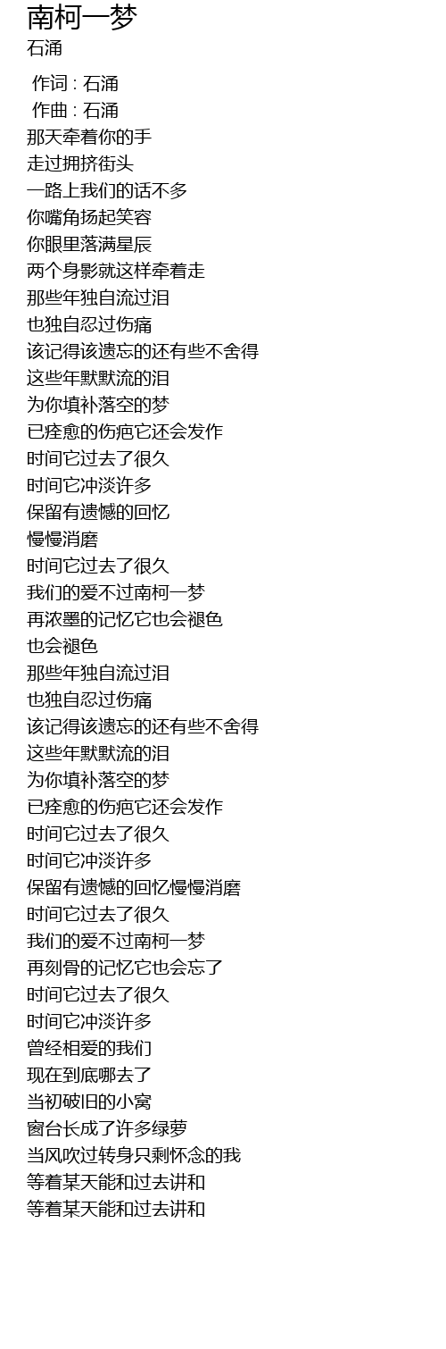 | [00:00.000] | 作词 : 石涌 |