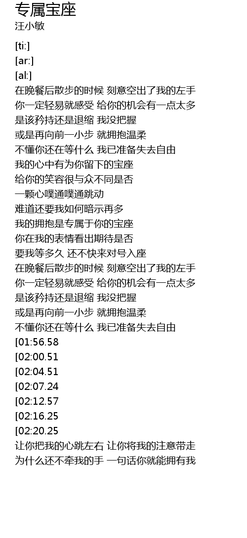 | [03:16.76][02:12.57] | wo de yong bao shi zhuan shu yu ni de bao zuo |