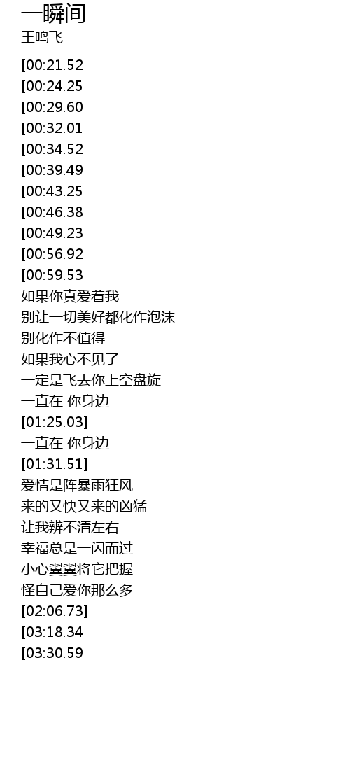 | [03:28.76][03:18.34] | yī shùn jiān |