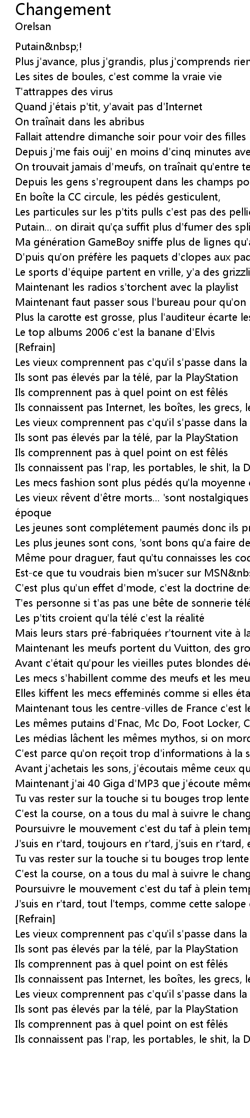 | Les vieux comprennent pas c' qu' il s' passe dans la t te des jeunes | |