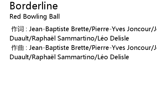 | [00:00.000] | 作曲 : Jean-Baptiste Brette/Pierre-Yves Joncour/Jonathan Duault/Raphaël Sammartino/Léo Delisle |