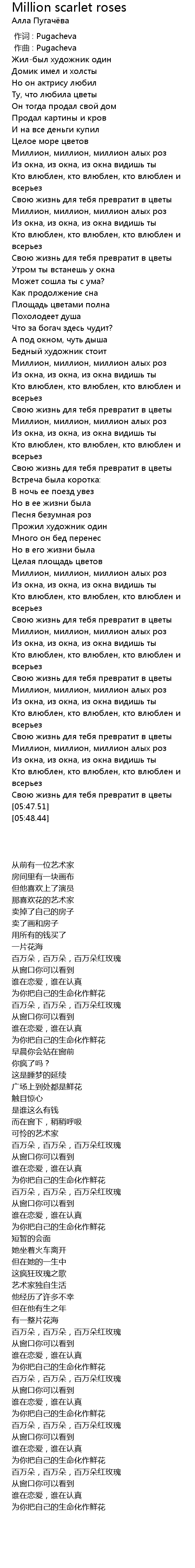 作词 : Pugacheva |