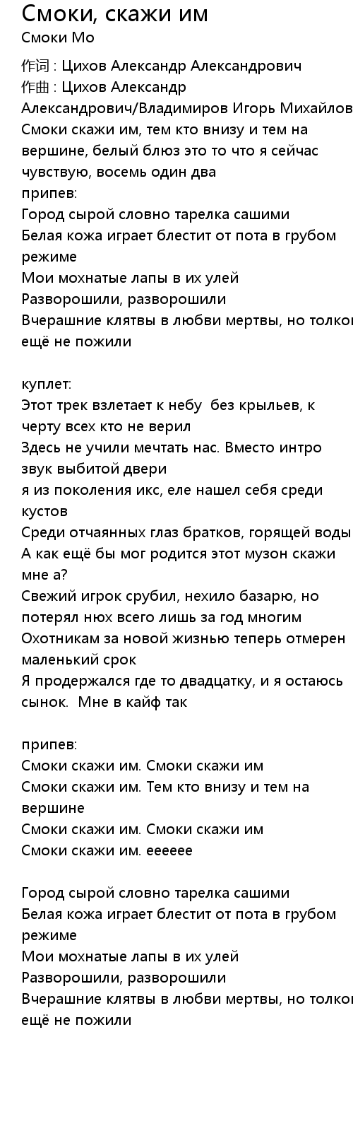 Смоки скажи им. Тем кто внизу и тем на вершине |