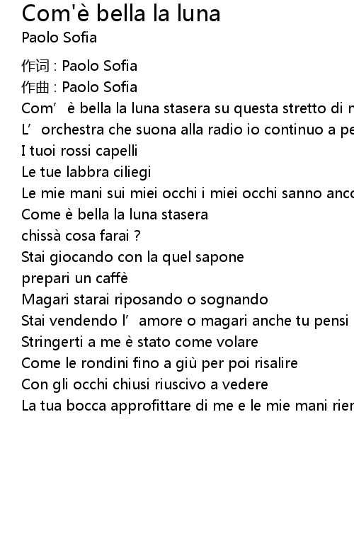 | Com'è bella la luna stasera su questa stretto di mare | |