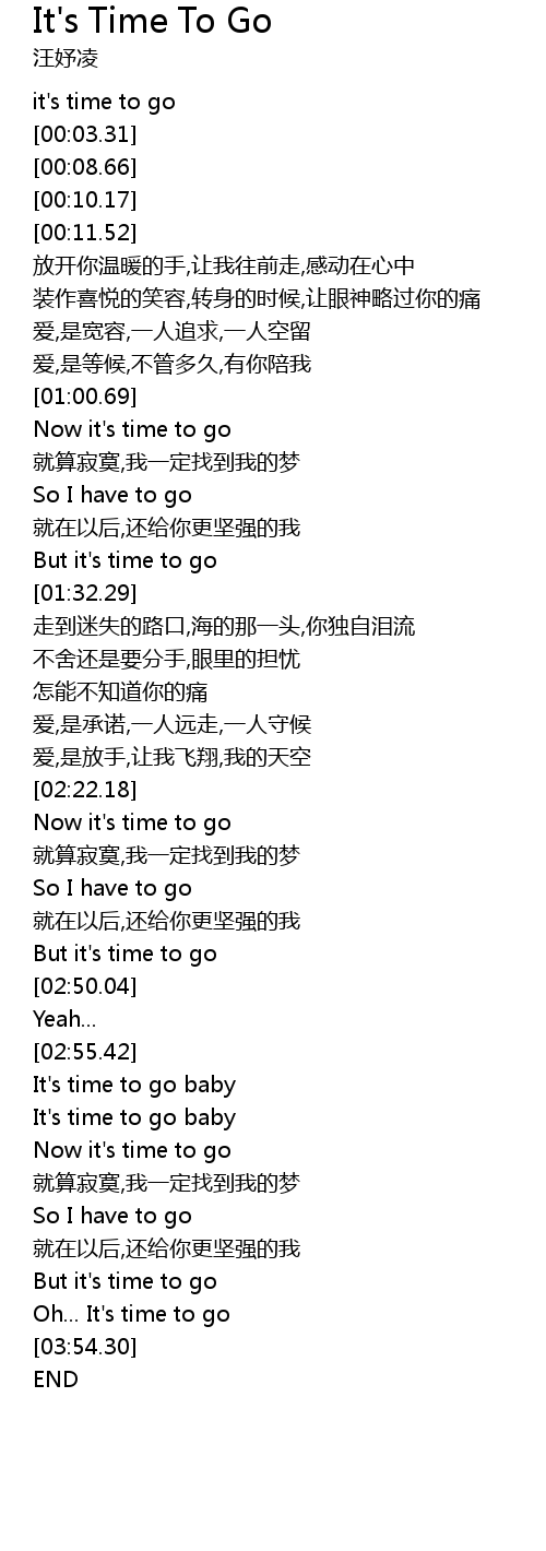 | [00:01.13] | it' s time to go |