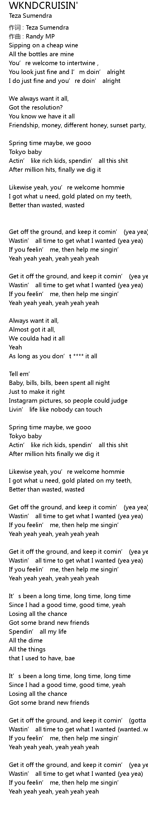 | Get it off the ground, and keep it comin' gotta keep it comin' bae | |