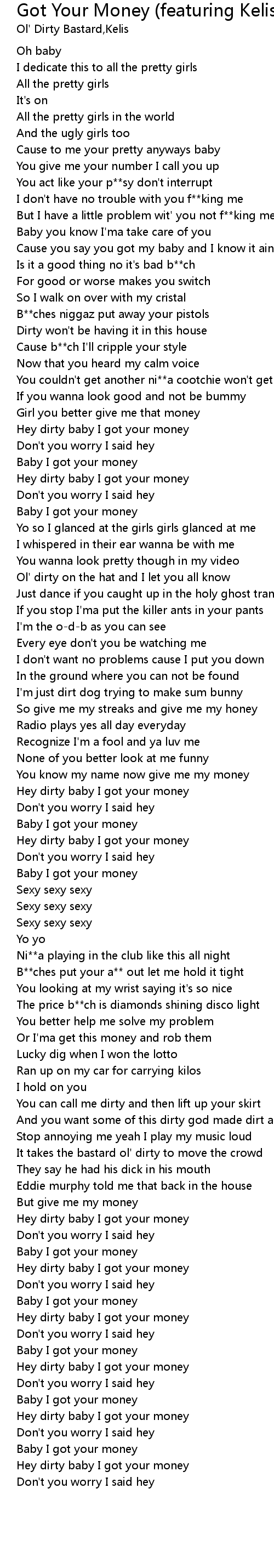 Hey dirty baby I got your money |