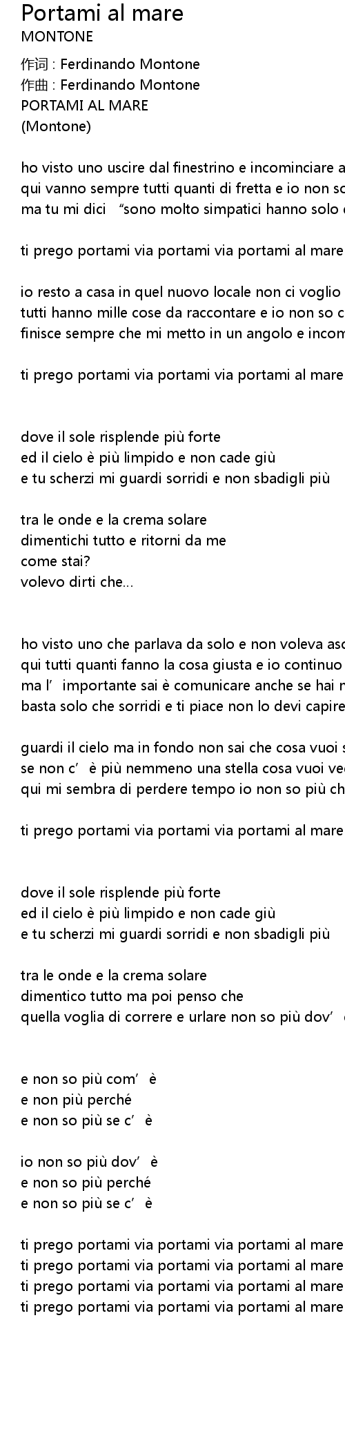 | ti prego portami via portami via portami al mare | |