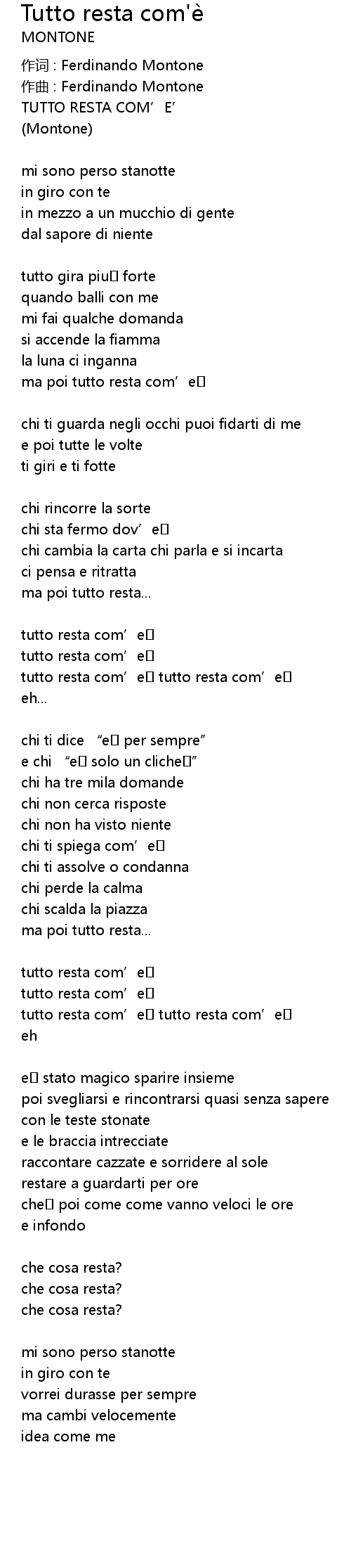 | ma poi tutto resta com' e | |