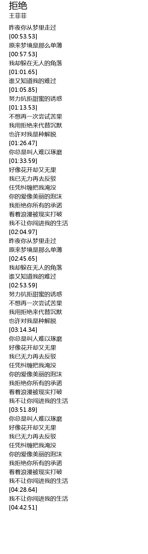 | [04:14.01] | 我拒绝你所有的承诺 |