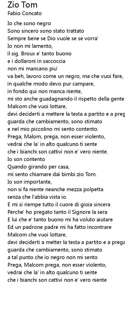 mi sento chiamare dai bimbi zio Tom. |