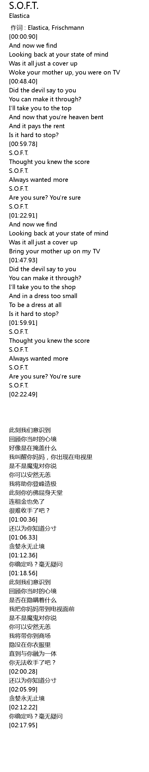 | [00:00.00] | zuò cí : Elastica, Frischmann |