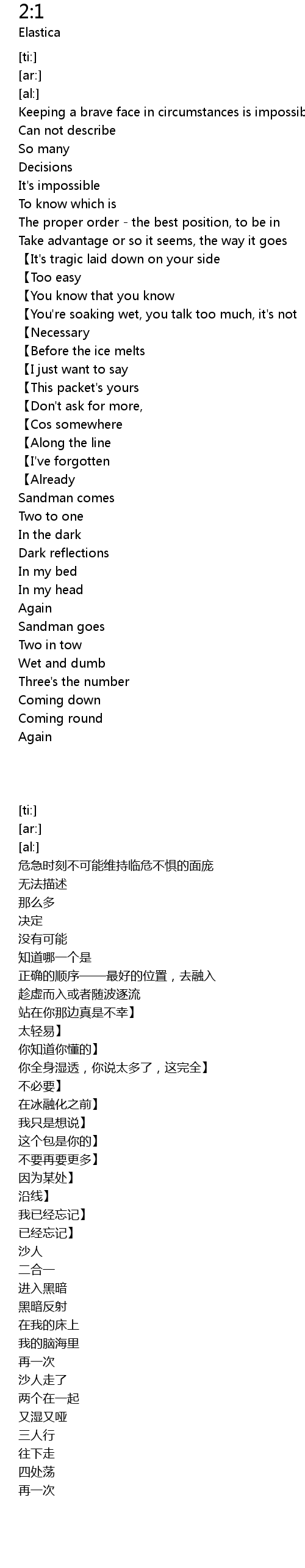 | [01:34.68] | Two to one |