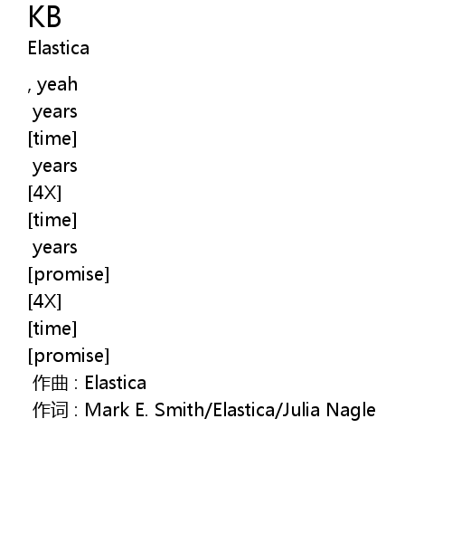 | [00:00.00] | 作词 : Mark E. Smith/Elastica/Julia Nagle |