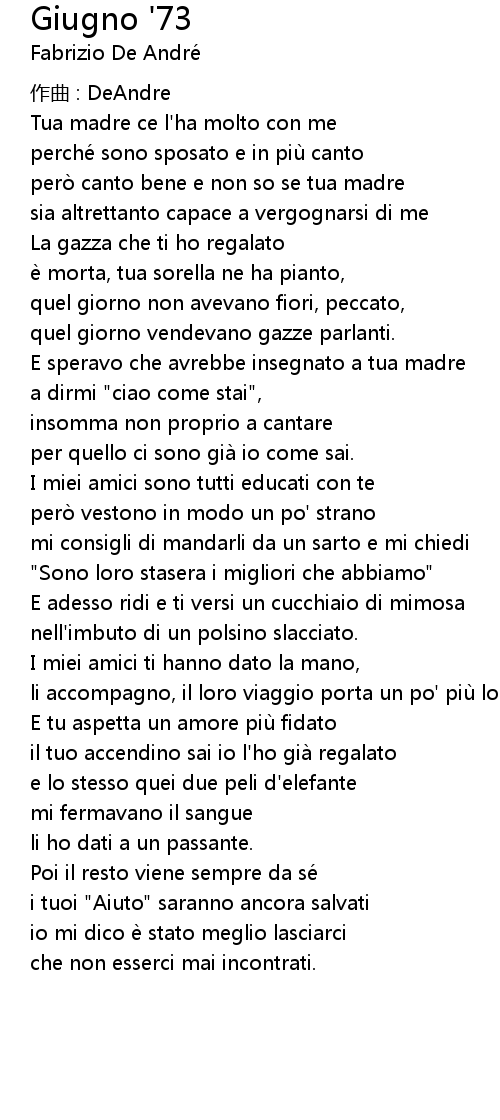 | Song | Giugno '73 |
