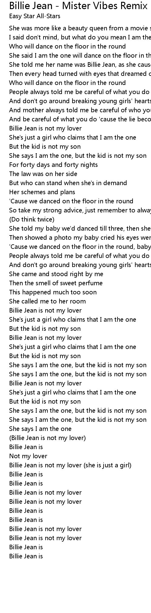 Billie Jean - Mister Vibes Remix Lyrics