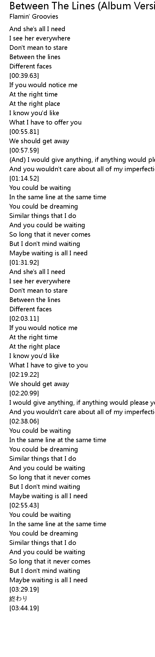 | [01:56.66] | Between the lines |