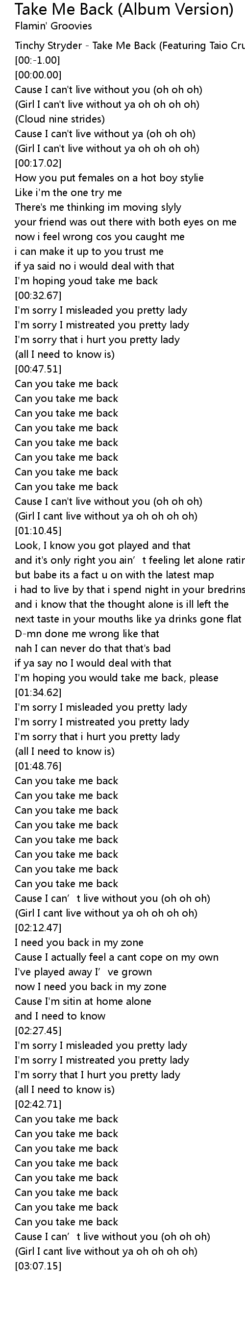 | [03:01.42] | (Girl I cant live without ya oh oh oh oh) |